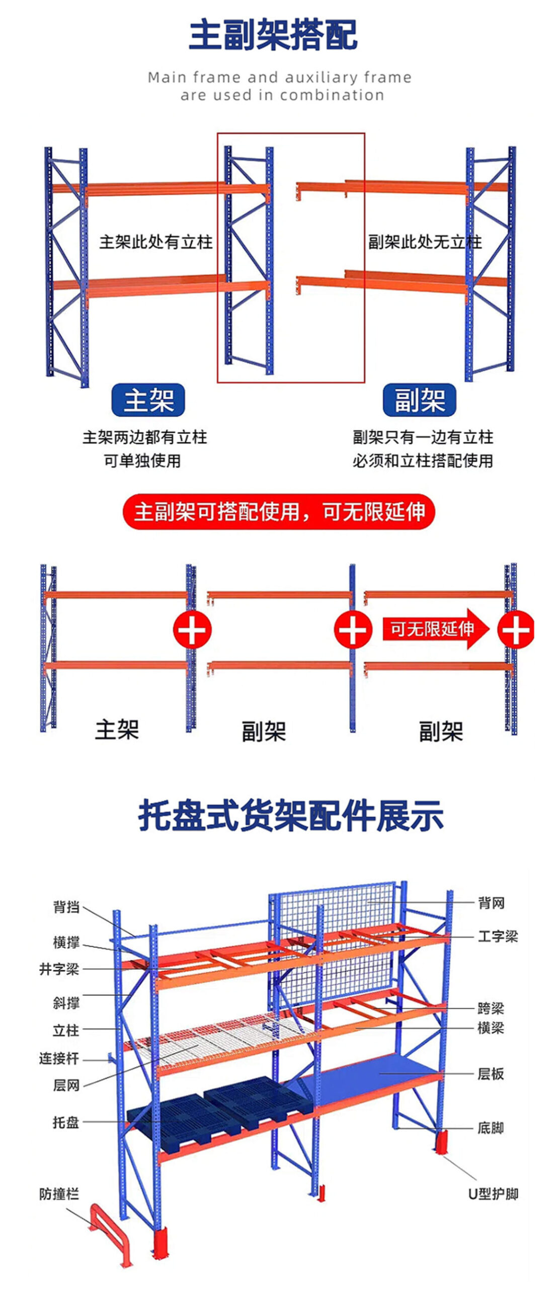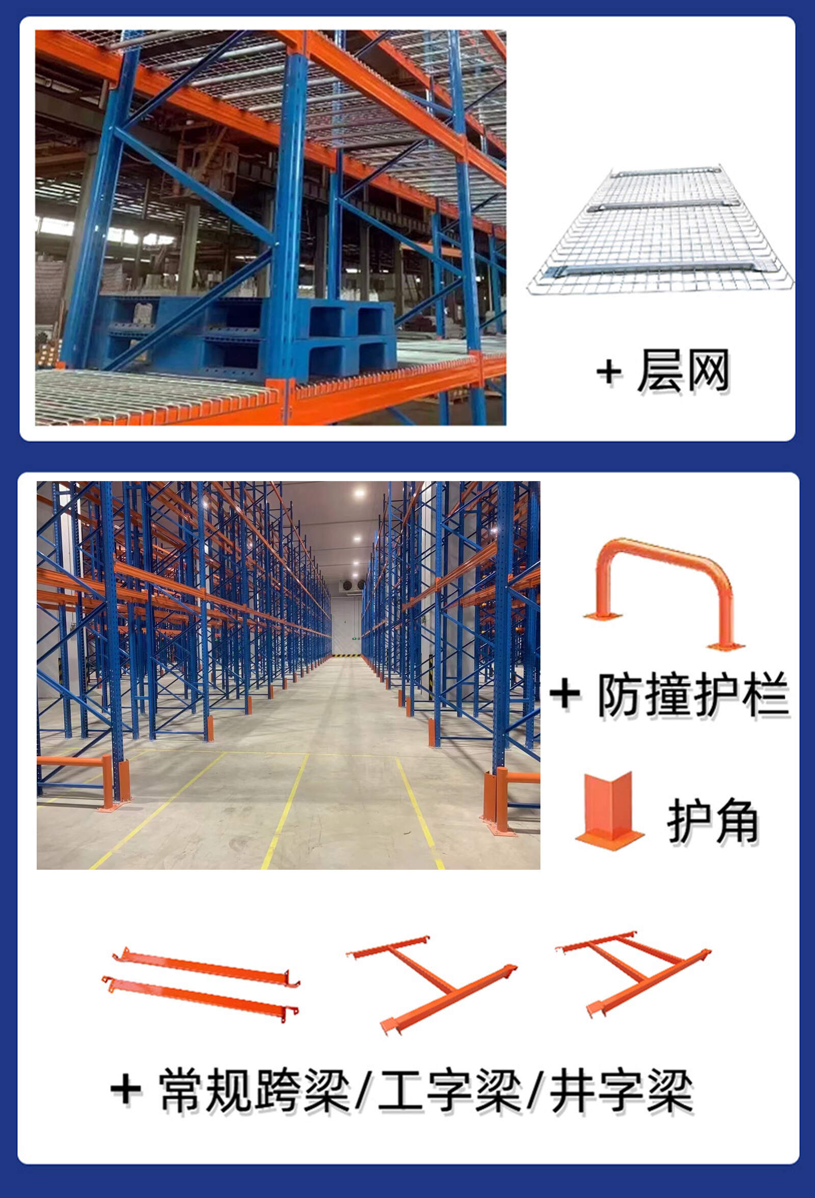 Heavy-duty racks, also commonly known as beam racks or cargo racks, belong to the category of pallet racks and are the most common type of racking in various domestic storage racking systems. The fully assembled structure in the form of column pieces + beams has the characteristics of adjustable height, strong stability, and high space utilization. It is connected to the columns by snaps or bolts to form a stable support frame; the shelves are mostly steel mesh panels or wooden brackets, which can effectively disperse the pressure of goods and improve the overall bearing capacity. Heavy-duty racks are widely used in large enterprises, manufacturing warehouses, logistics distribution centers and other fields. Its strong load-bearing capacity and stable structure enable it to stably support the long-term stacking of various heavy commodities such as industrial raw materials, machinery and equipment, chemical products, etc., and effectively avoid safety accidents caused by deformation or collapse of the shelves.