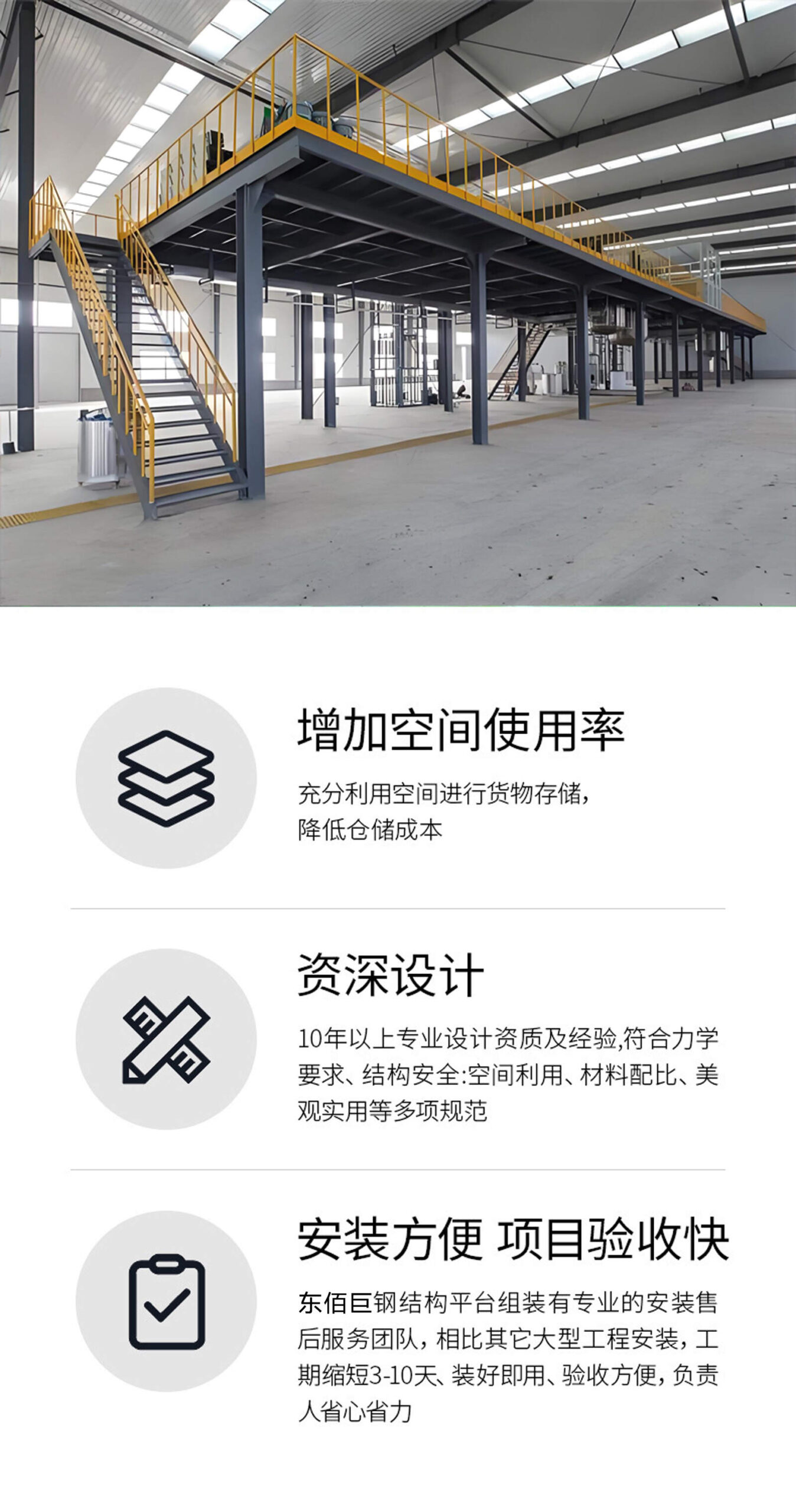Fast project acceptance Dongbaiju steel structure platform assembly has a professional installation and after-sales service team. Compared with other large-scale project installations, the construction period is shortened by 3-10 days, it is ready for use after installation, and the acceptance is convenient, which saves the person in charge worry and effort.