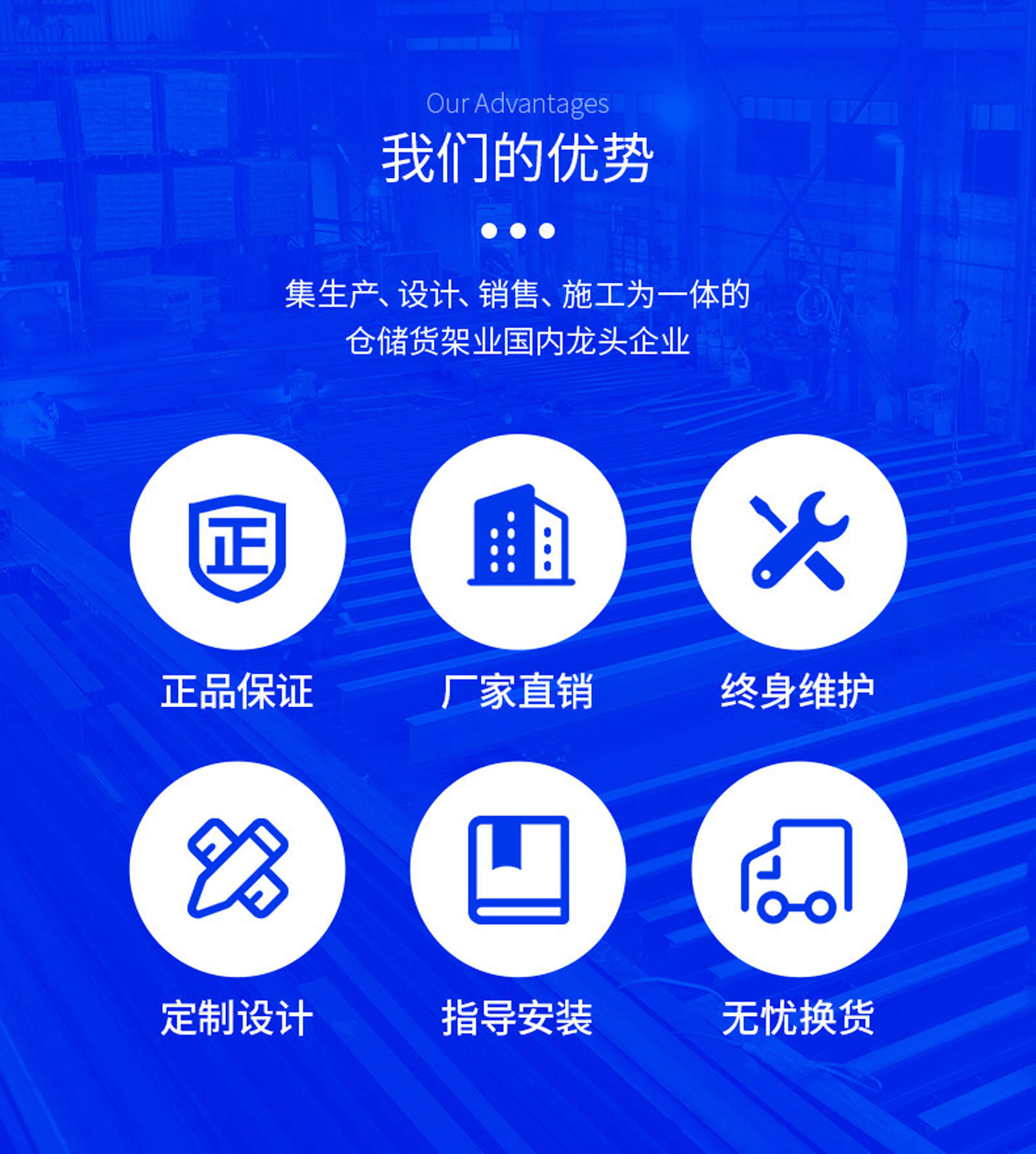 Our strengths: We are a leading domestic manufacturer of warehouse shelving, integrating production, design, sales, and construction. We offer genuine products, factory direct sales, lifetime warranty, custom design, installation guidance, and worry-free exchanges.